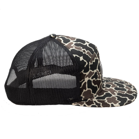 Vintage Camo Snapback Hat – 7-Panel Flat Bill Fishing Cap | Cast Camo Flat Bill