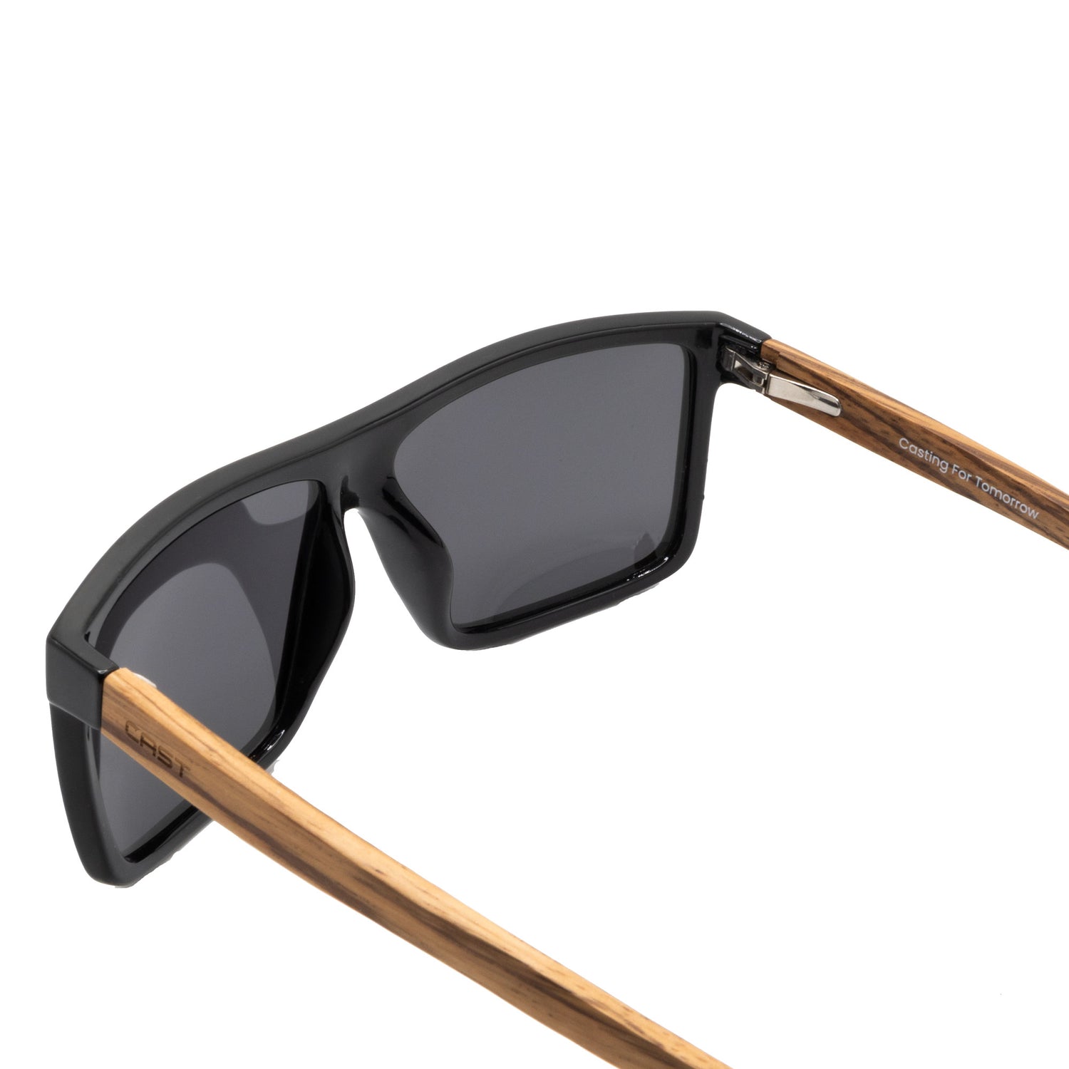 - Gloss Black Frame / Walnut Temples - Black Tint Lens - 10% LT